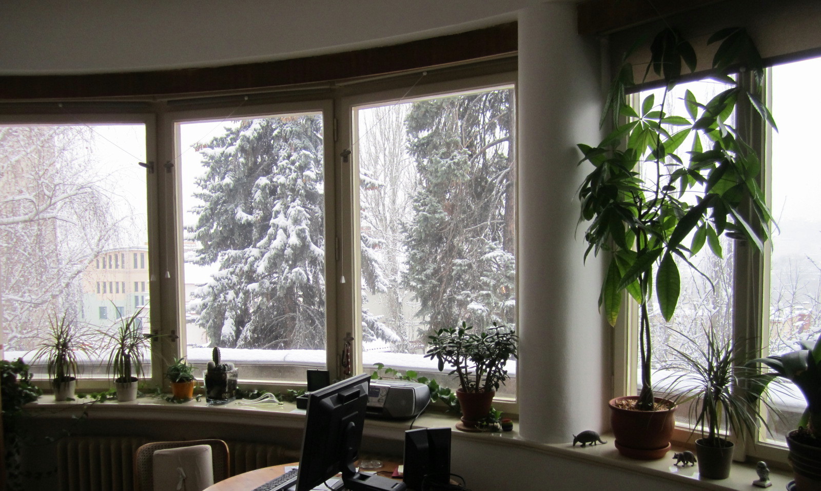 Meanwhile, my writing desk across the room calls to me. It is feeling lonely. I watch it with a bit of trepidation. Writing, such a hard labor. While reading is such an easy joy. But seasons change, the snow will melt. So I must pull myself from the cushioned chair by the imagined hearth and sit myself in the harder chair at my desk.